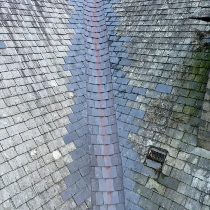 Révision de toiture : Diagnostic précis des points sensibles du toit et changement d’ardoises ou tuiles cassées et/ou manquantes, d’ardoises déplacées ou de joints dégradés.