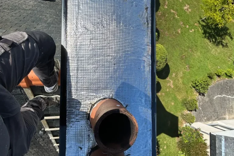 Etanchéité plateau de cheminée à Trignac Réalisation de l’étanchéité du plateau de cheminée d’une maison individuelle à Trignac (44)…