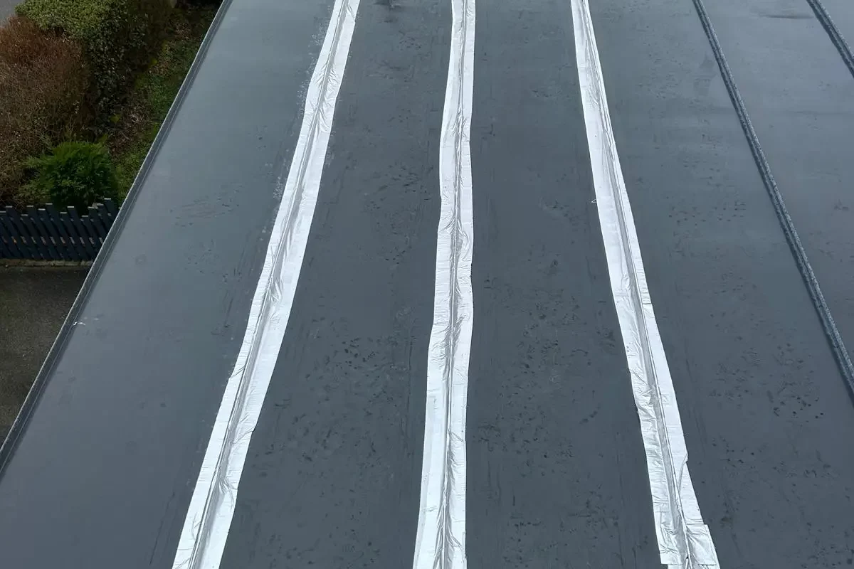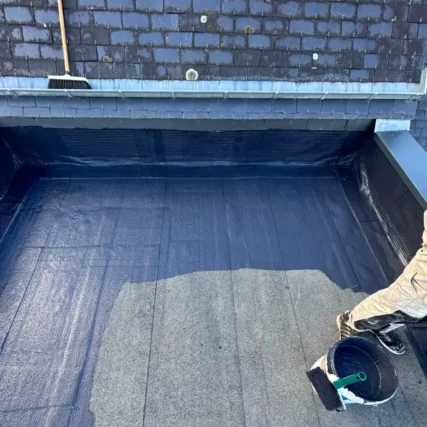 Nettoyage, réparation des fissures et remise en peinture d’un toit terrasse en Morbihan.