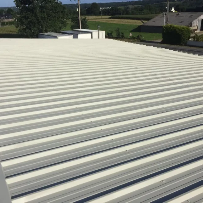 Nettoyage, réparation et remise en peinture d’une couverture en bac acier pour un bâtiment professionnel près de Muzillac