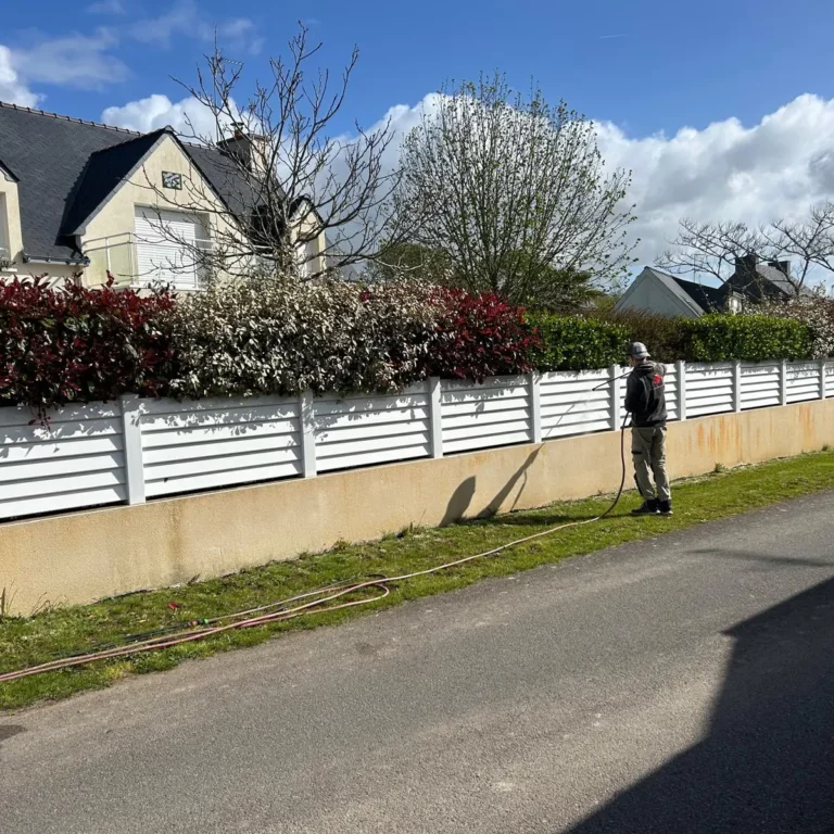 Nettoyage haute pression de muret Nettoyage de muret à Surzur sur la presqu’île de Rhuys.…
